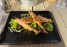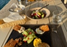 My last evening I told the waiter, Aristotle—we talked about Plato: no really, we did—to bring me what I needed to eat before I left, what I mustn’t miss. So he brought a remarkable salad of quinoa and freshly-caught red mullet, small, battered and deep fried whole, that were all crunch and savor. And then a dessert. Which was good, don’t get me wrong, but more to be admired than as something I’d want to eat again. Unlike granny’s chocolate nut masterpiece.
