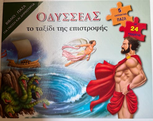 When you tell someone that you’re heading for Ithaca and that you intend to pack the Fagles translation of the Odyssey to have with you—on paper in hardback, thank you very much—and they say, ‘You don’t want to drag that thing around taking up space. You can get it as an ebook. Much better,’ do not believe them. You can’t get it as an ebook and most of what you can is about Ulysses and Jupiter and similar abominations. No, you need the real thing because Odysseus will be all around you, like Rip Van Winkle in the town of Catskill where he once didn’t live because he was, of course, a made up character who didn’t exist. Just like Odysseus. But like Van Winkle (Bridge! Real Estate! Diner!) he’s been adopted as the island mascot, and beyond that into a stand-in for its culture and history, real, and in his case, imagined.