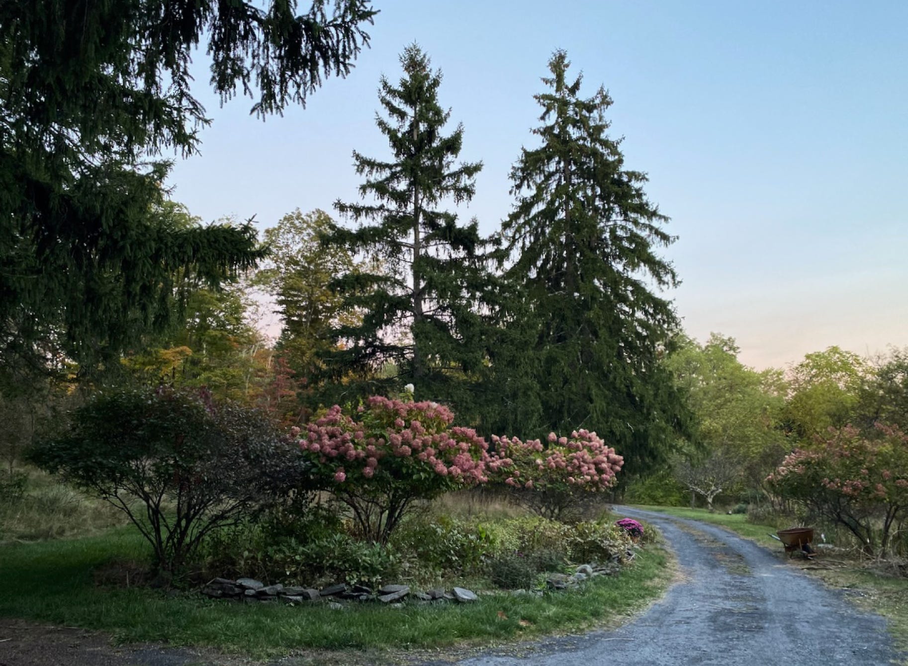 Yesterday in the garden, at the end of the day, as the light softened into a haze, all the coppery leaves were echoed by the grasses that I leave to grow long, trampled into patterns by the small herd of deer that stops by, the youngsters playing zoomies in the long grass, as happy to run in it as the dogs used to be. This year they ate all the leaves from the daylilies that grow along the stone path to the porch, the leaves I’d been planning to cut back, for which I’m grateful—though I wish they might have spared the little hydrangea I just planted instead of eating it down to the twigs. I hadn’t protected it because I used to know that deer don’t eat them. Now I know different. I did protect the shrub roses I planted nearby in a moment of weakness, knowing full well that roses don’t grow here. Still I buy them from time to time, remembering when once a bush got established and was beautiful for four or five years before calling it quits.